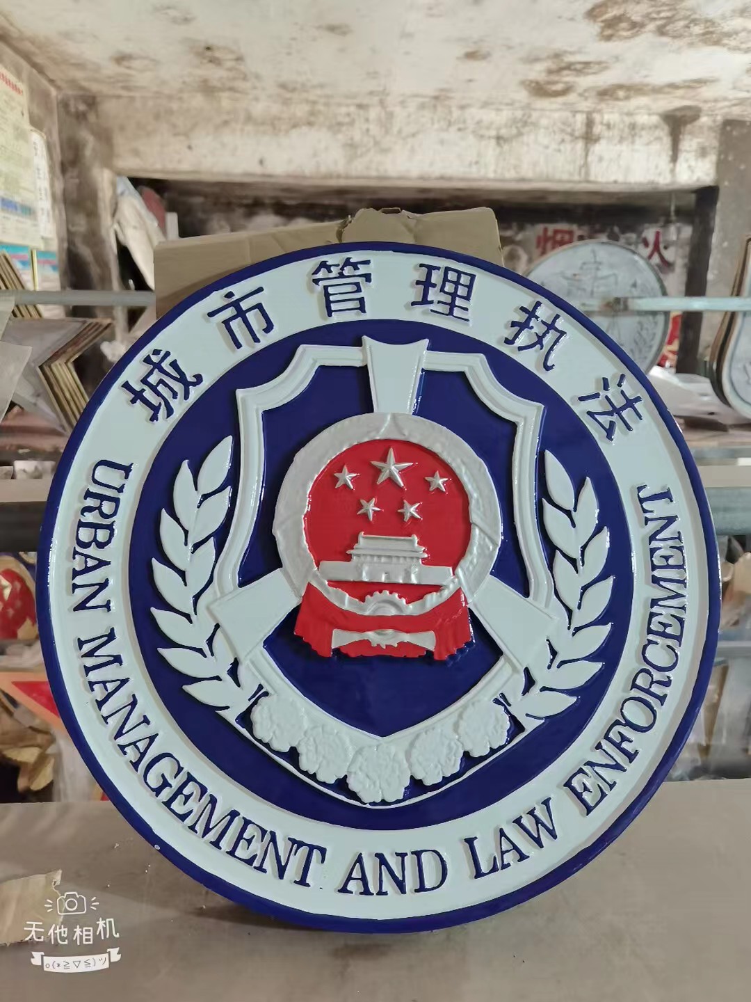 | 安装方式 | 湖南城市管理执法徽章-小徽章背面都配有穿挂耳孔,钉子钉在墙上,再用穿铁丝钢丝,适合安装在办公室/会议室会场等。大徽后面为膨胀螺丝孔,安装需要定做铁架,铁架固定墙面上后,再将徽章固定在铁架上。玻璃幕墙也是需要铁架方式安装。 |